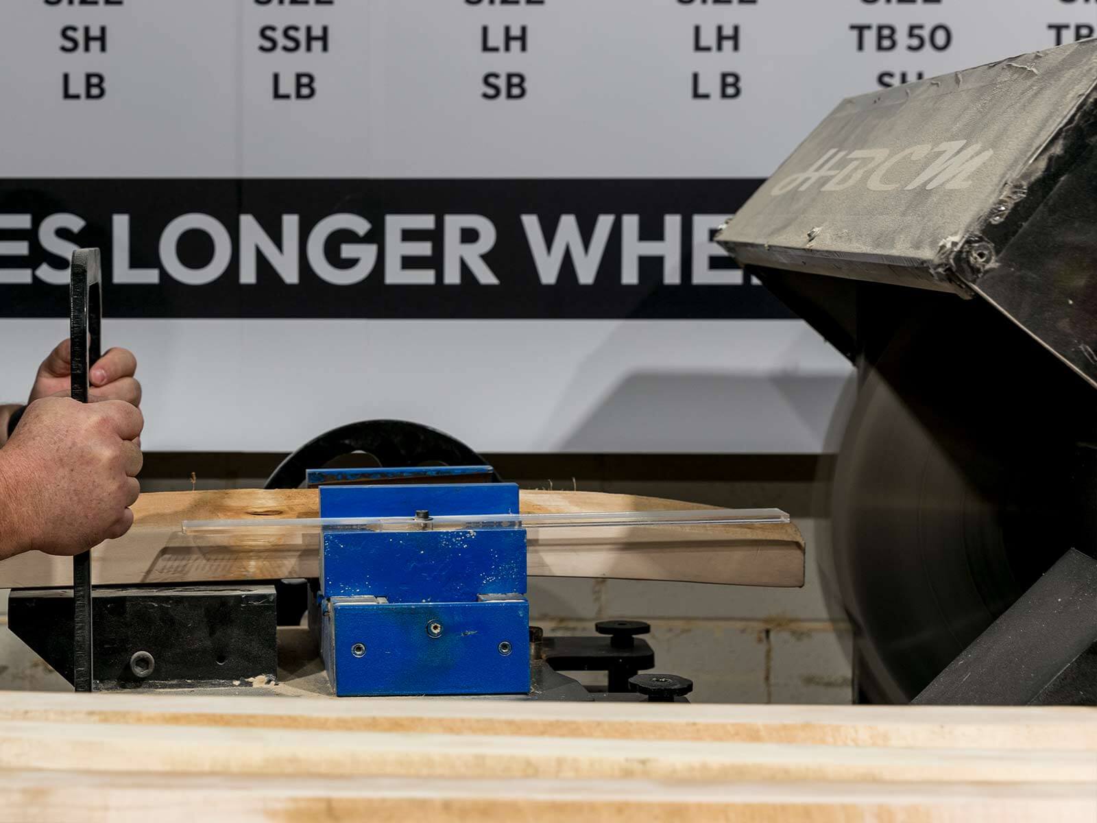 We use our awesome splice and handle cutting saw to get a perfect fit between blade and handle every time.