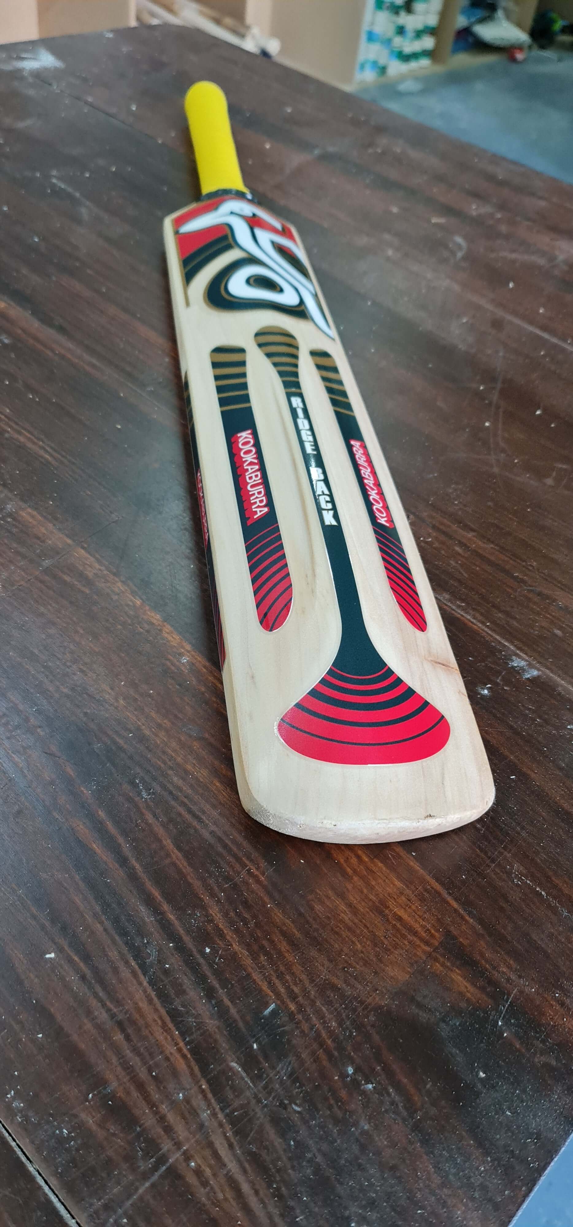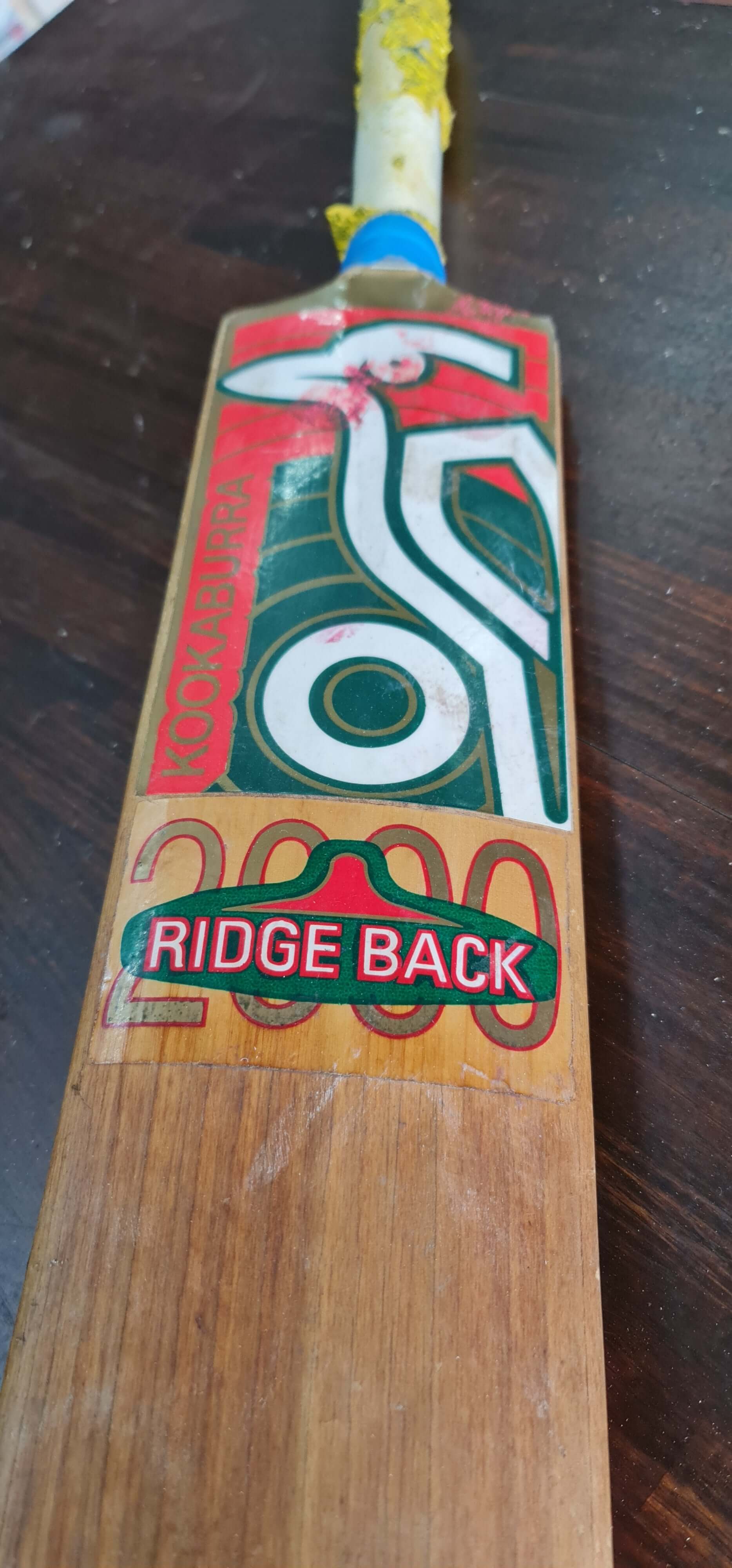This Kookaburra Ridgeback, famously used by Ricky Ponting, underwent a full restoration while maintaining its signature spine profile. The unique shape required careful sanding to preserve the original ridge, and the distinctive stickers were precisely matched to retain authenticity. With no major damage, the bat has been fully cleaned, refinished, and brought back to its original form.