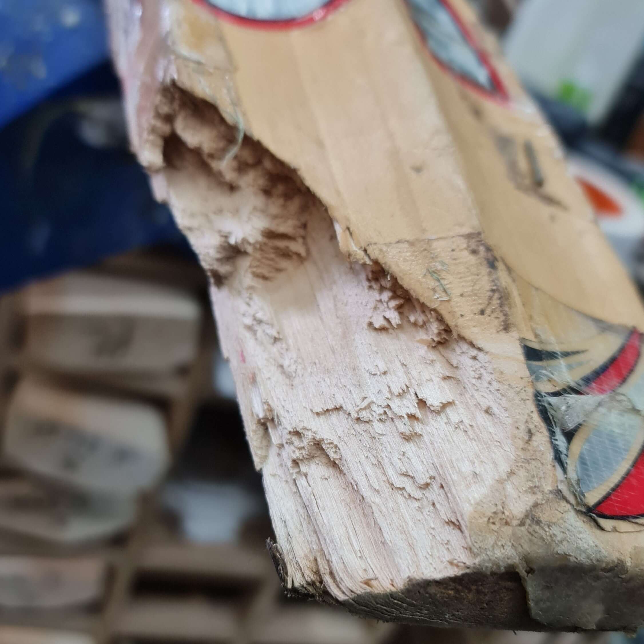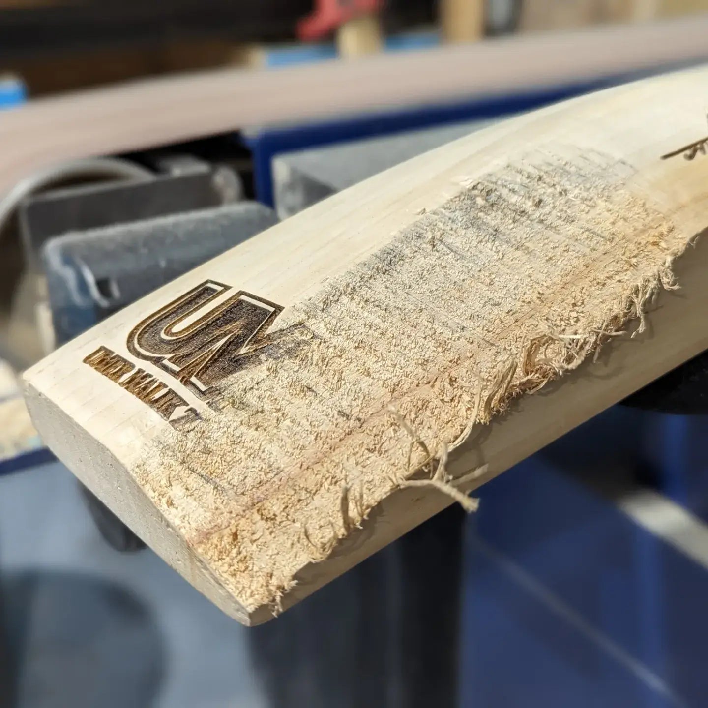This graft was a different kind as it was damaged in transport. The manufacturer was kindly going to replace it, but there was nothing wrong with the bat's face. We were tasked with adding a new piece of willow to the back of the bat to make it look and feel normal again.